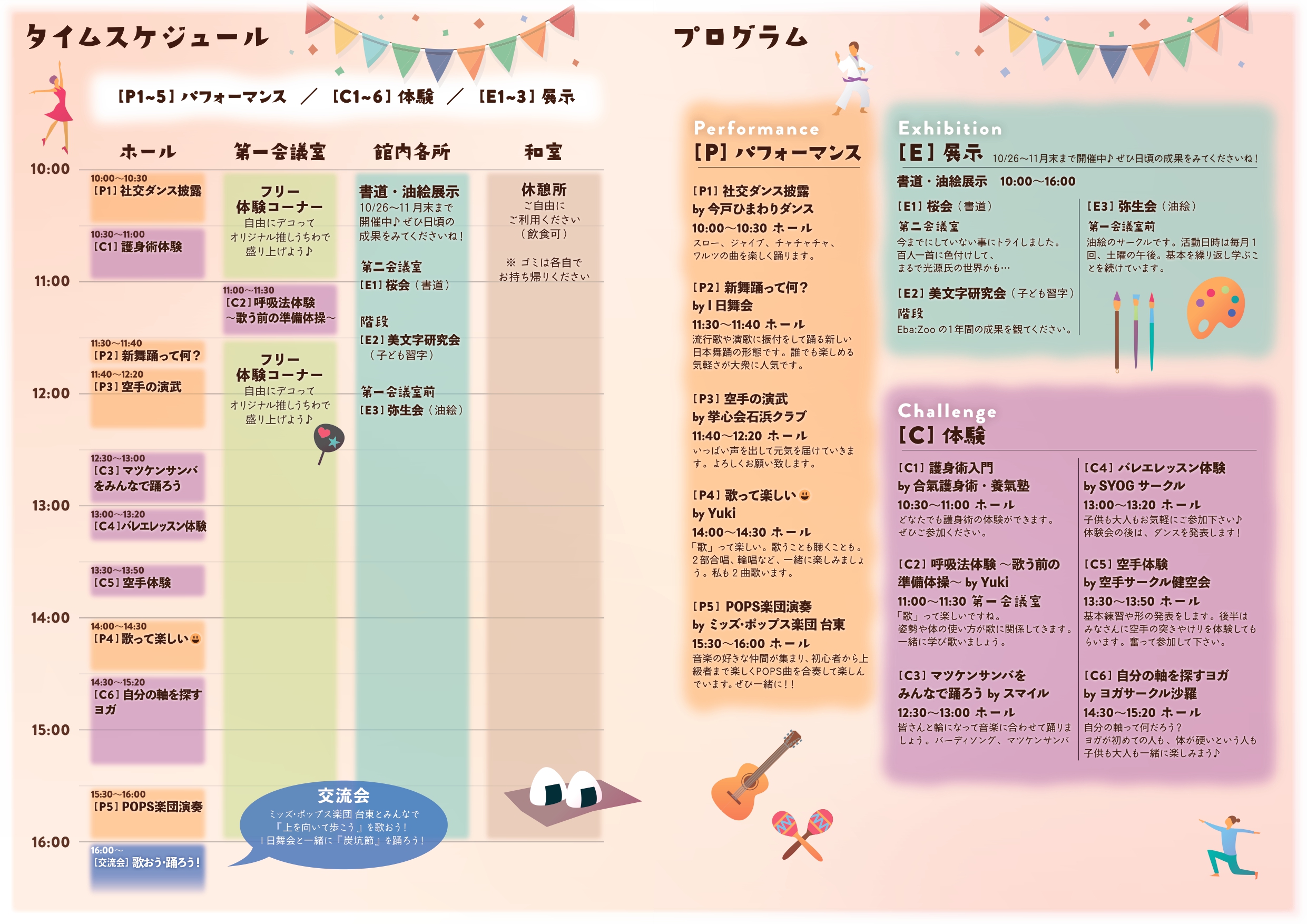 今戸フェスタは、今戸社会教育館で活動するサークルの皆さんのおまつりです。